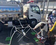 地震などの大規模災害に備え、1月18日に中前川町で応急給水訓練及び防災倉庫見学を開催しました。