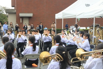 当日は小雨が降る中、100周年記念ロゴマークを制作していただいた、四国大学生活科学部人間生活科学科デザインコースの糸谷さんへの感謝状の贈呈式を行い、佐古小学校のみなさんによる素晴らしい演奏を保護者のみなさまとともに拝聴させていただきました。