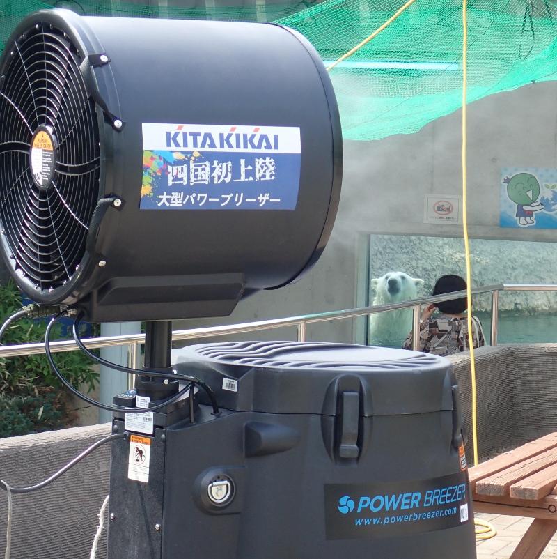 ホッキョクグマ舎近くに、業者がデモンストレーションで大型パワーフリーザーを設置。