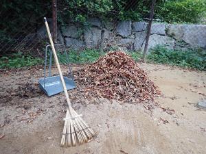 ユウキのパドックに落ち葉がたくさん落ちていたので、夕方一ヵ所にまとめると、翌朝、掘ったり、