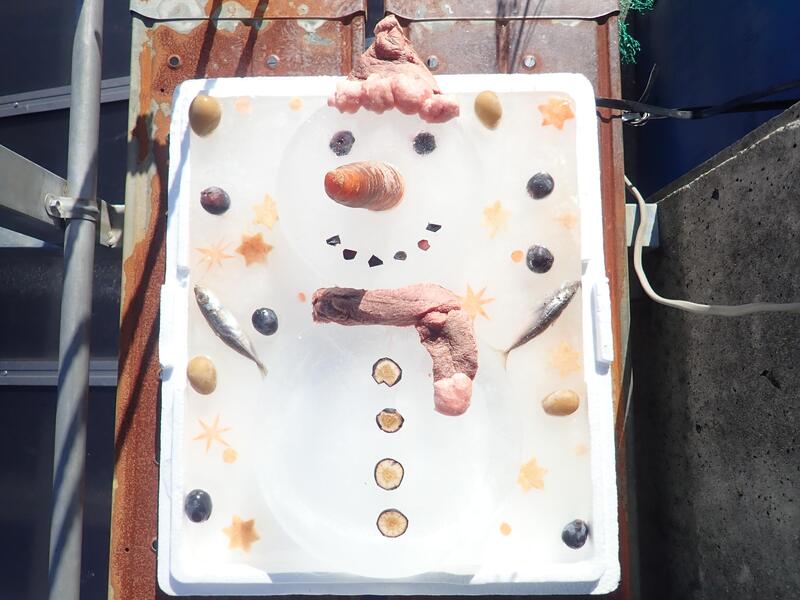 ポロロには、かわいい雪だるま型のケーキ、ユウキにはプレゼントのホッケが入った靴下型のケーキです。