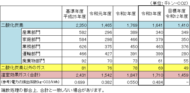 前年度と比較すると総排出量は減少していますが、前年度の電力の排出係数の大幅な悪化が例年程度まで改善されたことが主な要因です。
