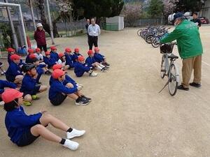 - 高学年以上の児童を対象とした自転車教室では、自転車の正しい乗り方や点検方法を学んだうえで、運動場に設定したコースを走行して交通ルールや安全確認の方法等を指導しています。
