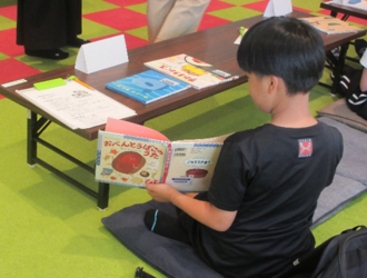 読み聞かせにふさわしい絵本の選び方、読む時の本の位置、持ち方、ページのめくりかた。そして、読むスピードや声の出し方などを、実演を交えながら一つ一つ丁寧に教えてもらいました。読み聞かせのコツを教わった後は、実践の時間です。本の持ち方やめくり方に注意しながら、保護者の方に向けて読み聞かせを行っていました。皆の前で練習の成果を発表してくれたお子さんも!今回の講座で学んだことを活かした読み聞かせに、参加者の皆さんから拍手が起こっていました。