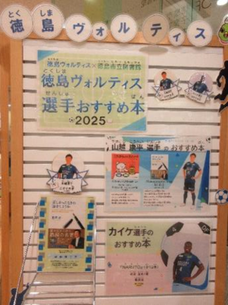 現在、徳島ヴォルティスとの連携事業の一環として、『徳島ヴォルティス選手おすすめ本2025』を展示しています。