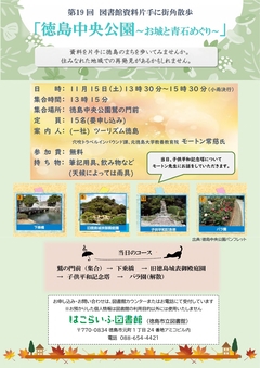 鷲の門前(集合) → 下乗橋 → 旧徳島城表御殿庭園 → 子供平和記念塔 → バラ園(解散)