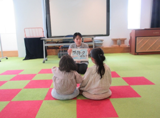 『かんぺきなこども』では、お話を読む前に「完璧な子どもってどんな子どもだと思う?」と問いかけると「勉強ができる!」「お父さんとお母さんの言うことが守れる」と答えてくれました。お話に出てくる完璧な子どもピエールは、お行儀もよく勉強もできて、街の人達もピエールの賢さに関心するほど!おまけにお母さんがこぼしそうになった水も、冷静にキャッチできるなどの行動に、参加されたお子さまは驚いていました。そして、最後の結末は伝えずに絵本を閉じると「え?最後は?」と絵本にとても興味を示している様子でした。