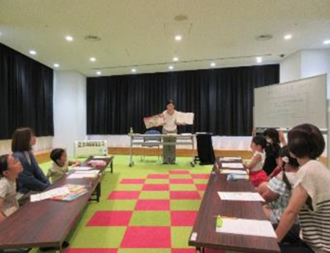 読み聞かせにふさわしい絵本の選び方、読む時の本の位置、持ち方、ページのめくり方。そして、読むスピードや声の出し方などを、実演を交えながら一つ一つ丁寧に教えてもらいました。読み聞かせのコツを教わった後は、実践の時間です。本の持ち方やめくり方に注意しながら、保護者のかたに向けて読み聞かせを行っていました。皆の前で練習の成果を発表してくれたお子さんも!今回の講座で学んだことを活かした読み聞かせに、参加者の皆さんから拍手が起こっていました。