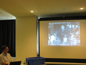 次に、昭和16年制作の映画「阿波の木偶」を上映しました。初代天狗久こと吉岡 久吉さんが人形の頭を彫っている貴重な映像です。