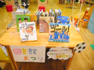 令和6年10月27日(日曜)から令和6年11月9日(土曜)の読書週間にあわせて、図書館まつりを開催しました。今年のテーマは「図書館といっしょに応援しよう! ー徳島ヴォルティス設立20周年ー」として、5階こども室、6階一般室、移動図書館(いずみ号)、また電子図書館のホームページにて、徳島ヴォルティスやサッカー、スポーツなどに関する資料を集めて展示しました。