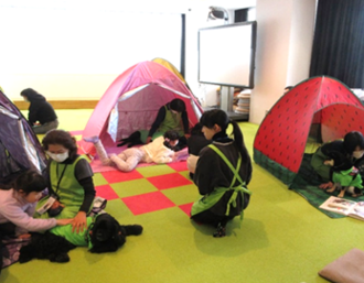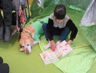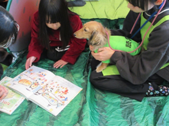 「読書犬」を知っていますか?読書犬とは様々な訓練を受けて子どもたちの読み聞かせをやさしく聞ける適正を認められたわんちゃんです。動物と触れあいながら読書を楽しむことで、子どもたちのやさしい気持ちを育てるお手伝いをしてくれます。
