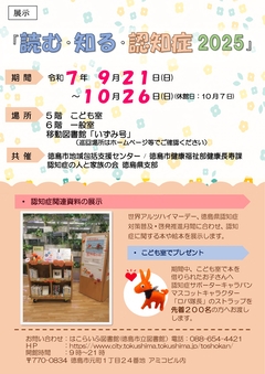世界アルツハイマーデー、徳島県認知症対策普及・啓発推進月間に合わせ、認知症に関する本や絵本を展示します。