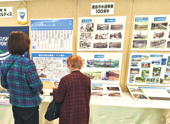 展示では、大正から令和の時代に至るまでの工事や施設の写真を掲載し、水道事業の歩みを紹介しました。また、耐震性貯水槽の役割に加え、災害発生時に本市が他都市へ災害派遣を行った際の様子を写真で紹介し、応急給水や応急復旧への取り組みについてもお伝えしました。