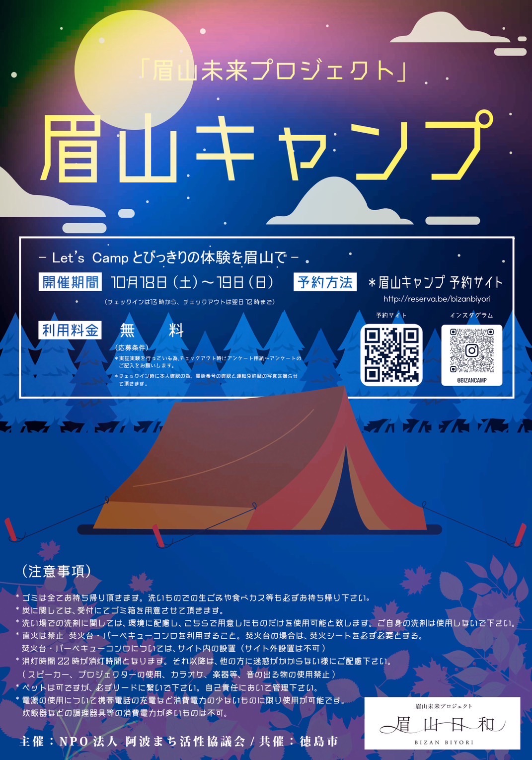 令和7年10月18日(土曜)~19日(日曜)に眉山キャンプを開催します。