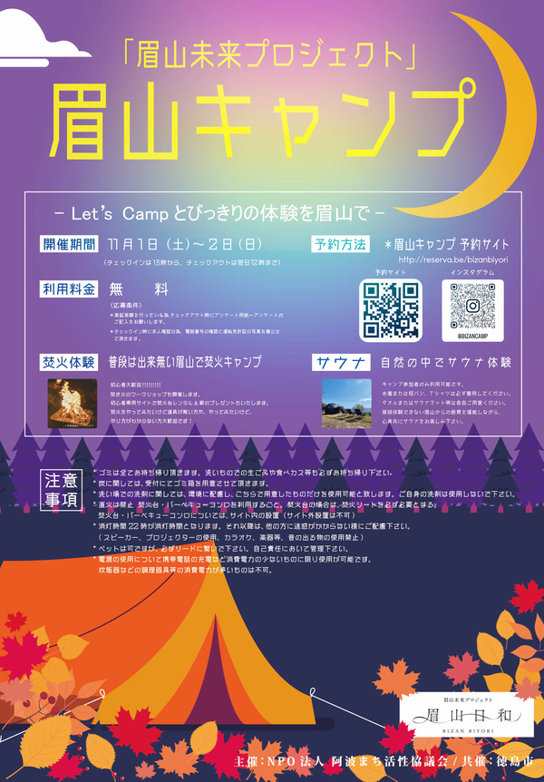 令和7年11月1日(土曜)~11月2日(日曜)に眉山キャンプを開催します。
