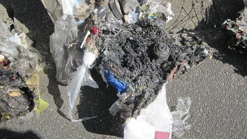 収集車火災が発生すると、ごみ収集車から収集したごみを全て取り出し、消防、警察が消火と現場検証を行い、原因物を特定します。