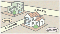 標準宅地とは、市町村内の地域ごとに、その主要な道路に接した標準的な宅地をいいます。