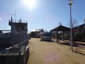 千切山公園内にある、屋根のあるベンチ付近に停車します。 公園内は許可された車両しか侵入できません。