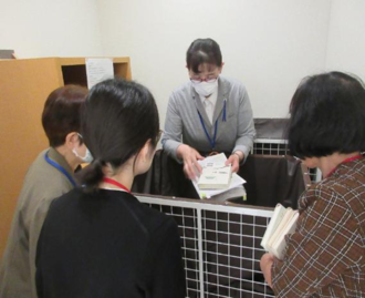 アミコビル1階の返却ポストの仕組みを実演を交えて説明しました。