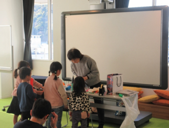 令和8年1月31日(土曜)、はこらいふ図書館5階おはなしのへやにて「おやこでつくってあそぼう「大きなクラゲを浮かせたり、ダンスする小さなクロちゃんで遊ぼう!」」を開催しました。
