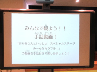 今回のイベントでは「おかあさんといっしょ スペシャルステージ みーんなカラフル」の動画を手話つきで鑑賞しました。